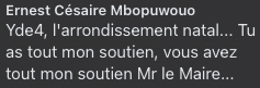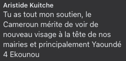 Ce sont des personnes qui ont au moins 20 ans et qui veulent appuyer ou participer à notre projet ; pour devenir conseiller municipal ; être observateur électoral ; être scrutateur ; pour être dans l’équipe d’expert et logistique. Nous avons la capacité de faire les choses différemment et en mieux ! YAOUNDÉ 4ème c’est entre autres : Emombo – Nkomo – Biteng – Mimboman – Mvan – Minkan – Kondengui – ODZA – Essomba.